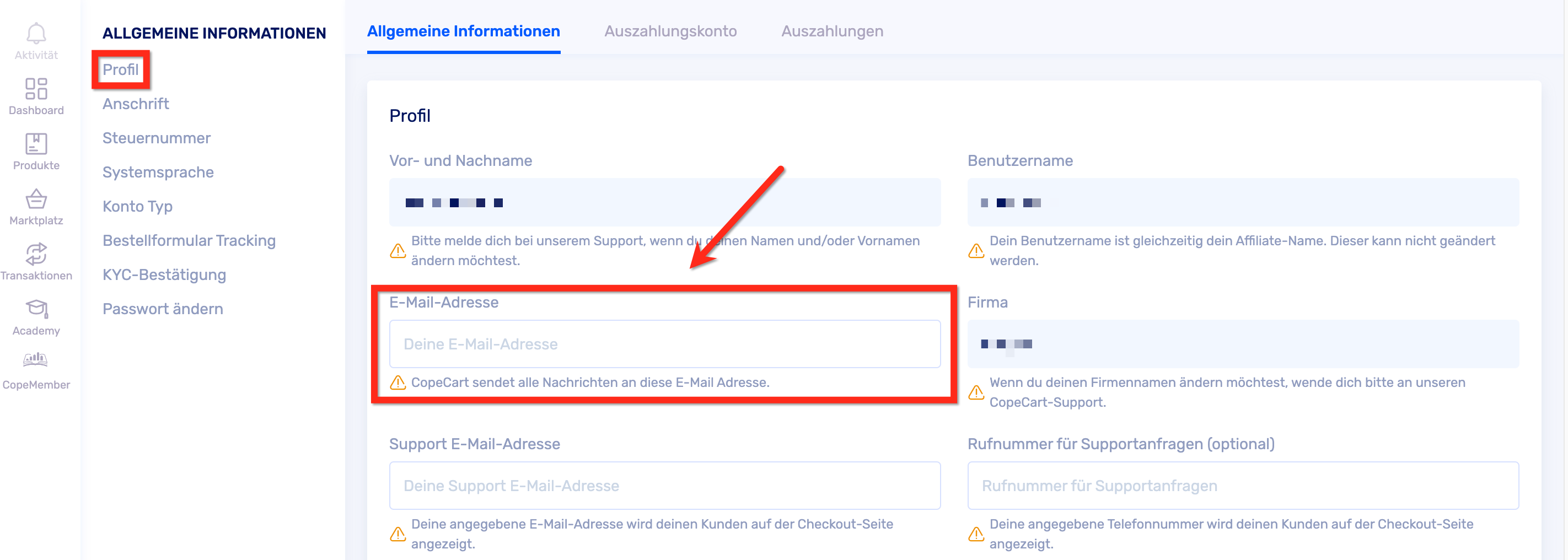 Hier sind die einzelnen Schritte für die E-Mail-Adressänderung in deinem CopeCart-Account:
