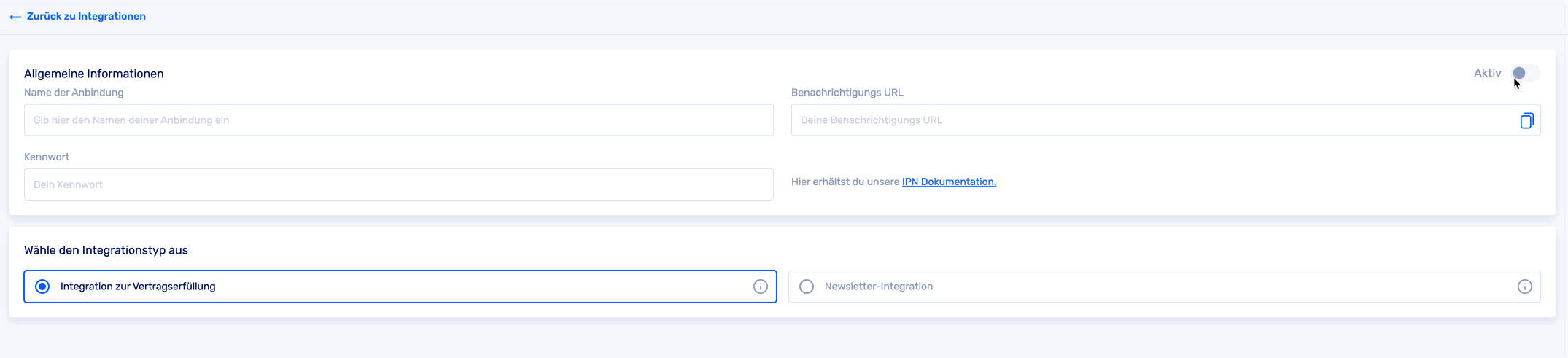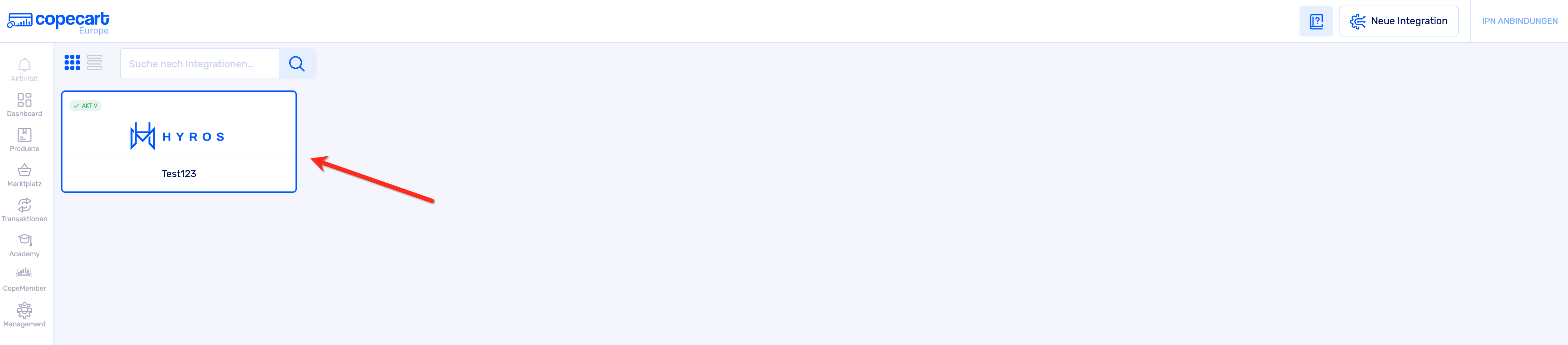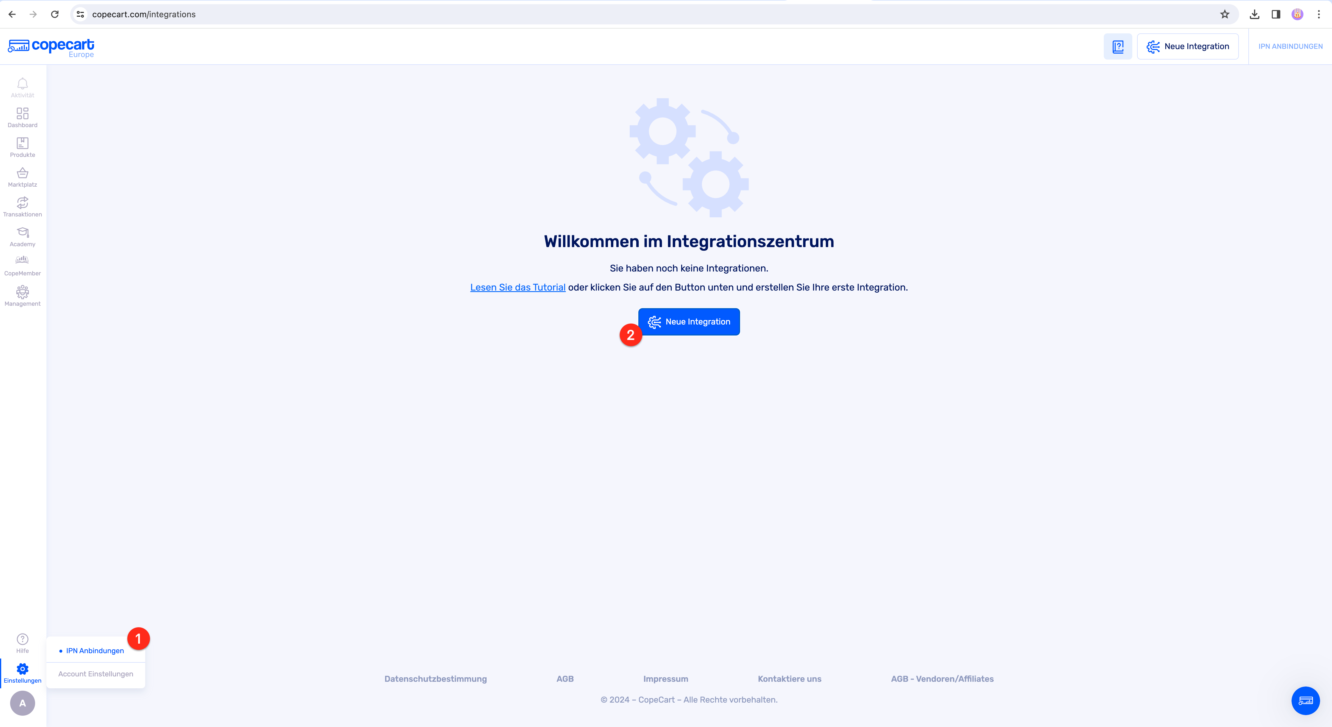 Nun erstellst du die Integration in deinem CopeCart-Account: