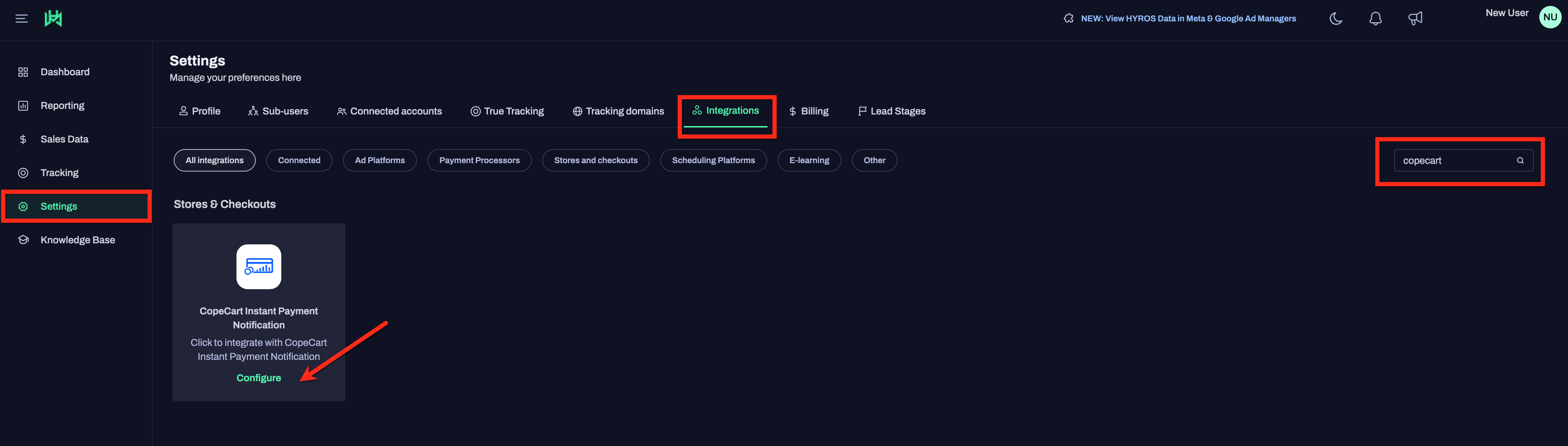 Anbindung zu Hyros | CopeCart Help Center
