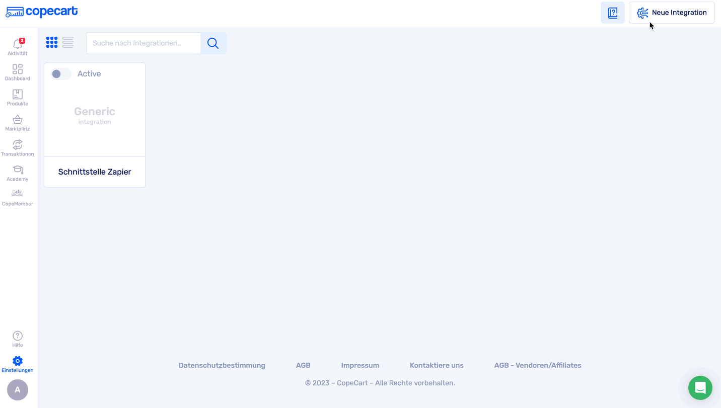 1. Wir starten in deinem CopeCart Account.