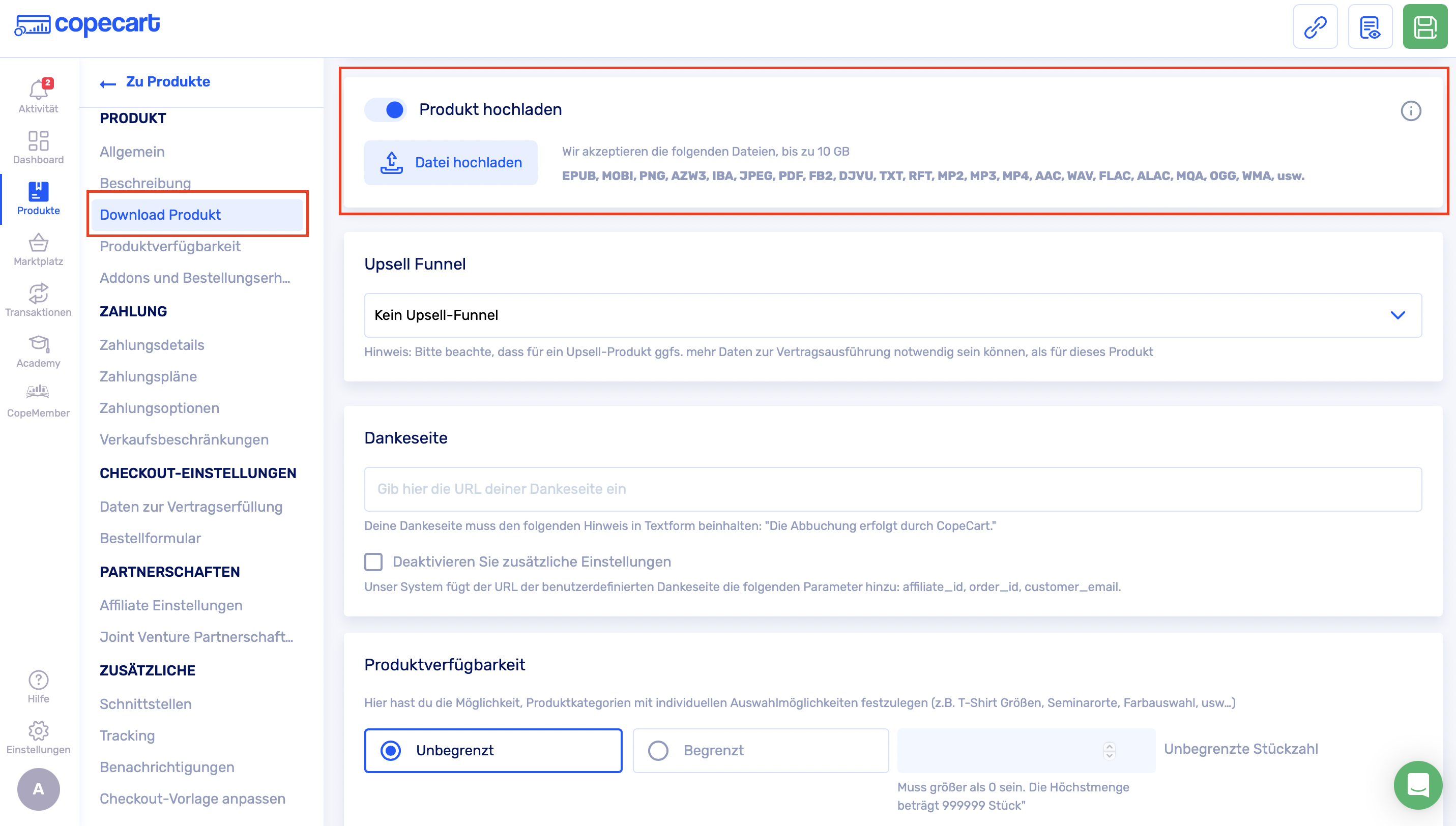 Datei für digitale Produkte bei CopeCart sicher und einfach hochladen | CopeCart Help Center