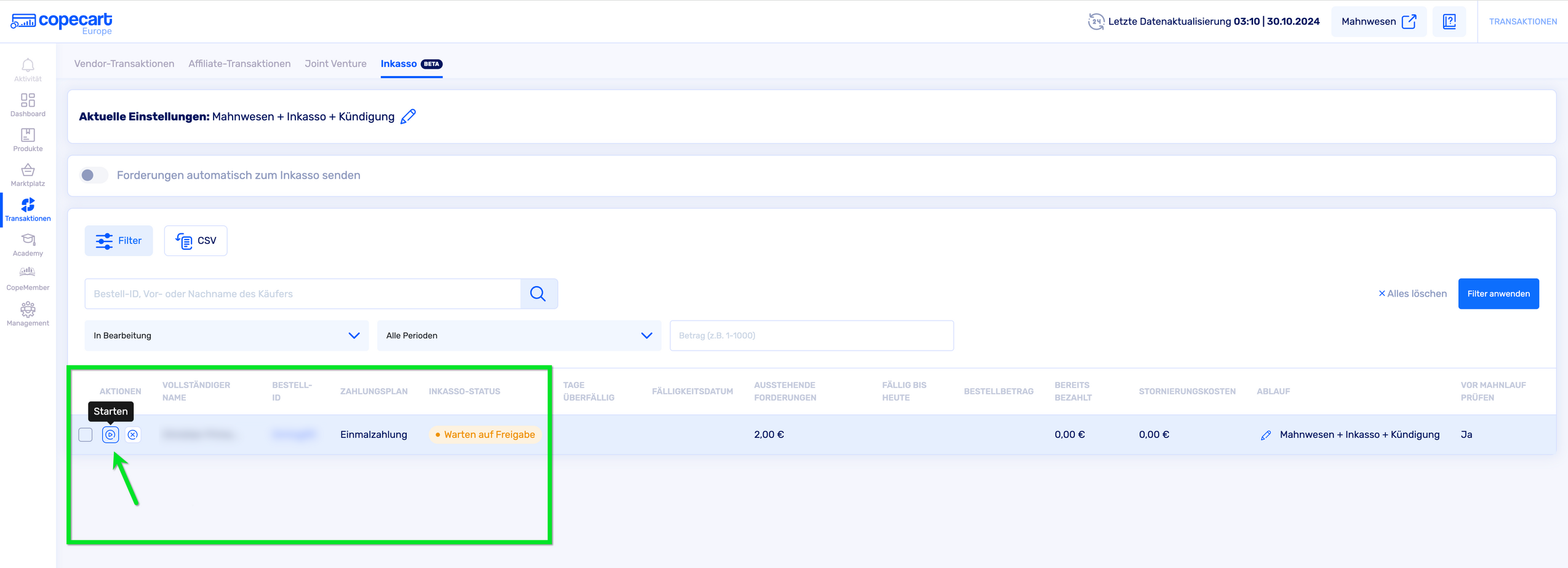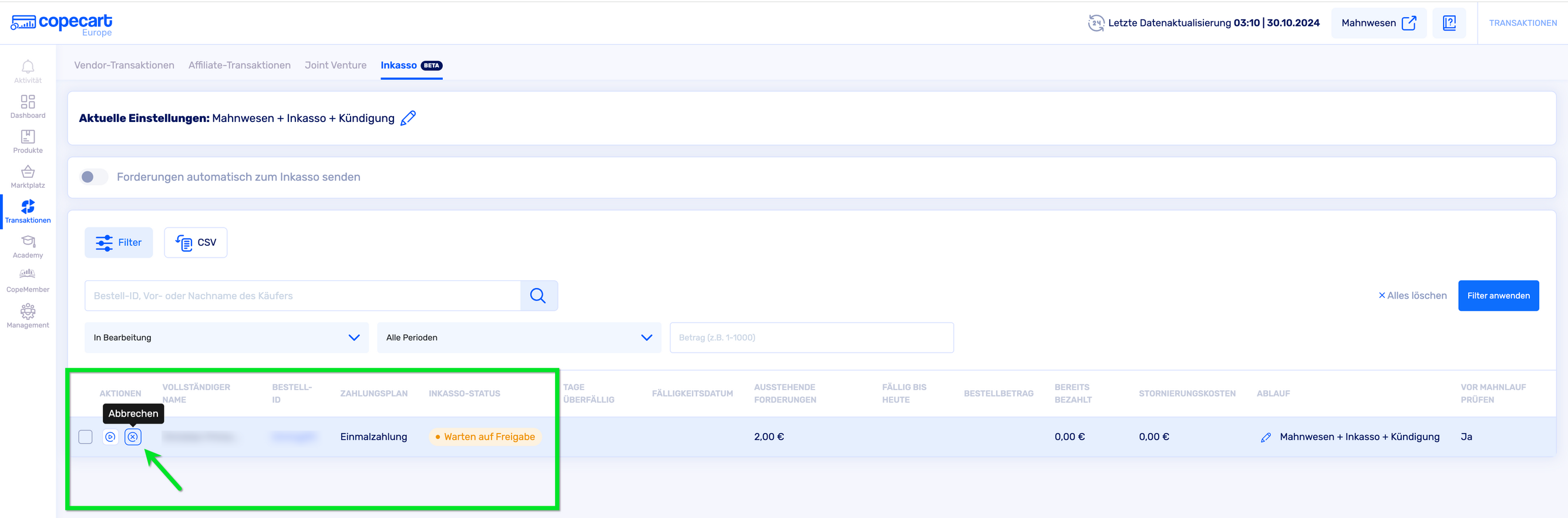 Effizientes Forderungsmanagement: Ein Guide zum Inkasso-Tab bei CopeCart | CopeCart Help Center
