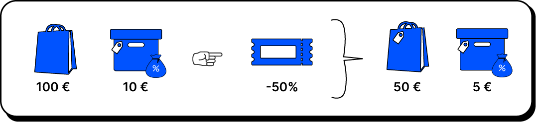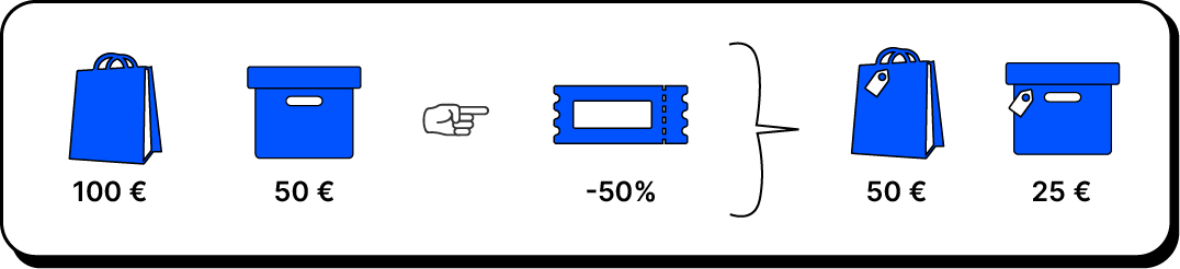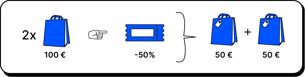 Wenn zwei unterschiedliche Produkte bestellt werden und der Gutscheincode einen 50 % Rabatt gewährt, bedeutet dies, dass die Kundin/der Kunde jedes einzelne Produkt mit einem Rabatt von 50 % erwirbt.