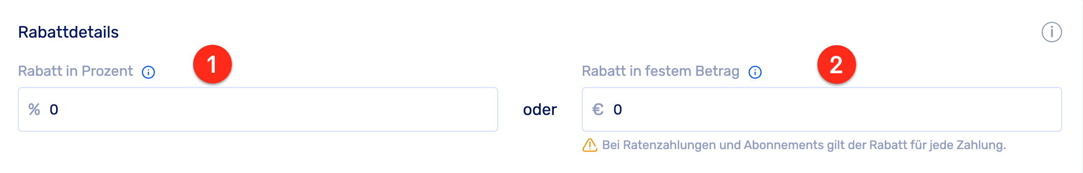 Bitte beachte auch, dass bei Ratenzahlungen und Abonnements der Rabatt von jeder Rate abgezogen wird.