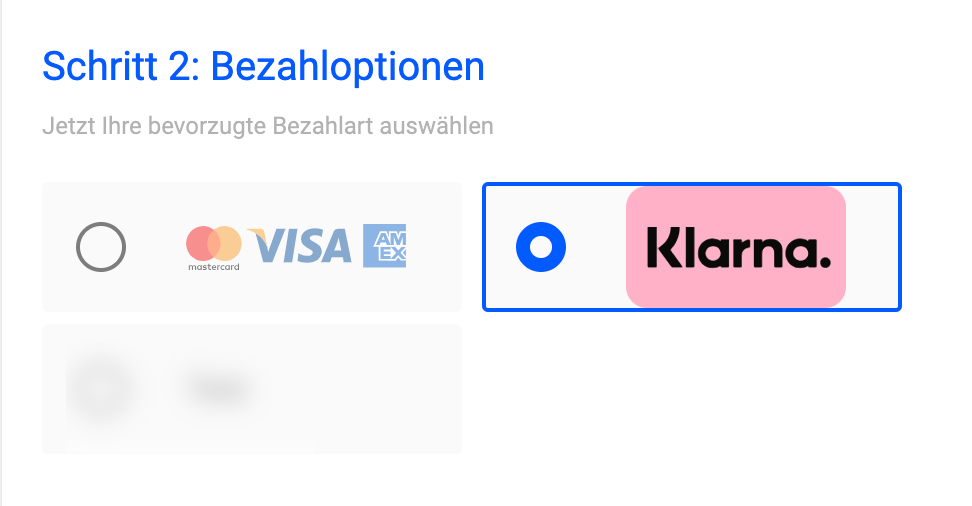 Wähle "Klarna" aus der Liste der verfügbaren Zahlungsoptionen aus.