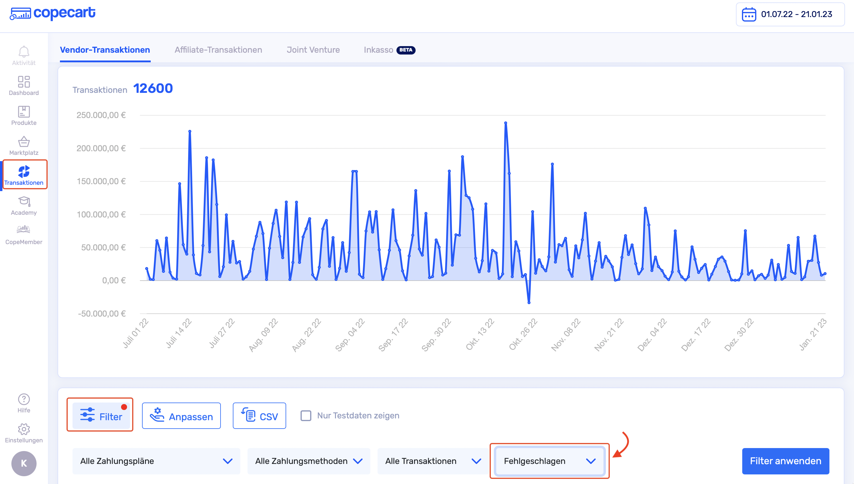 Wie finde ich eine fehlgeschlagene Zahlung? | CopeCart Help Center